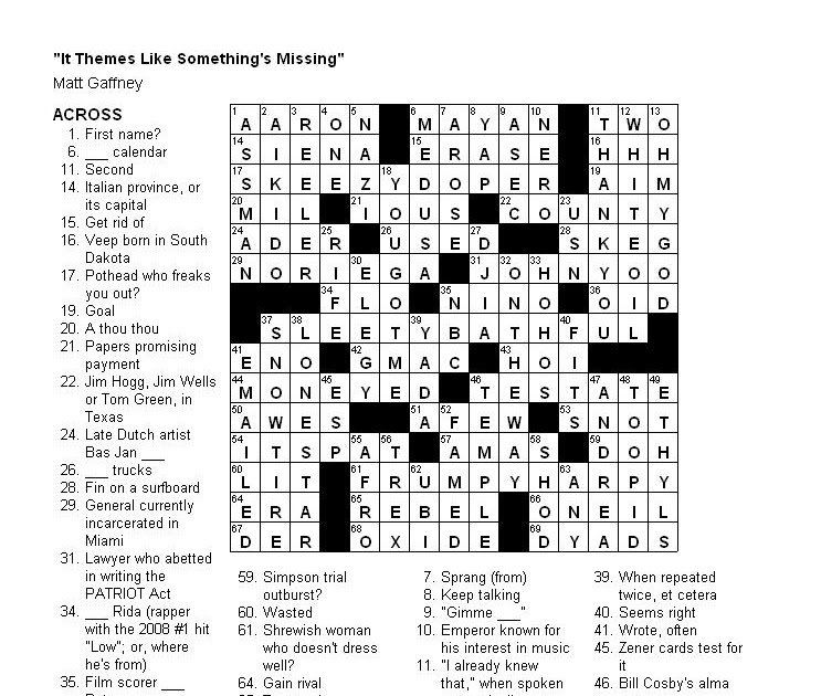 Matt Gaffney's Weekly Crossword Contest MGWCC 003 Friday, June