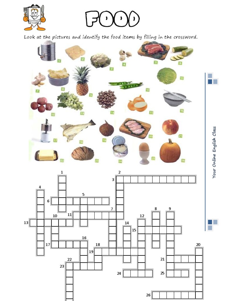 FOOD CROSSWORD English ESL Worksheets for distance learning and