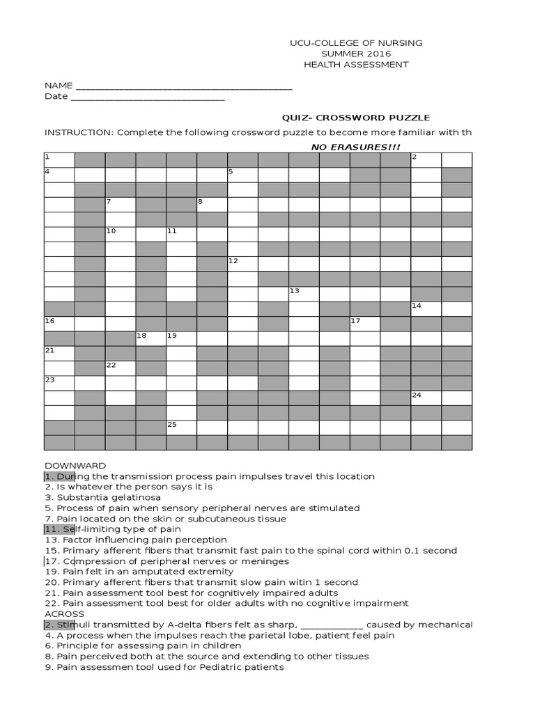 Pain Management Crosswords, Word Searches, Bingo Cards WordMint
