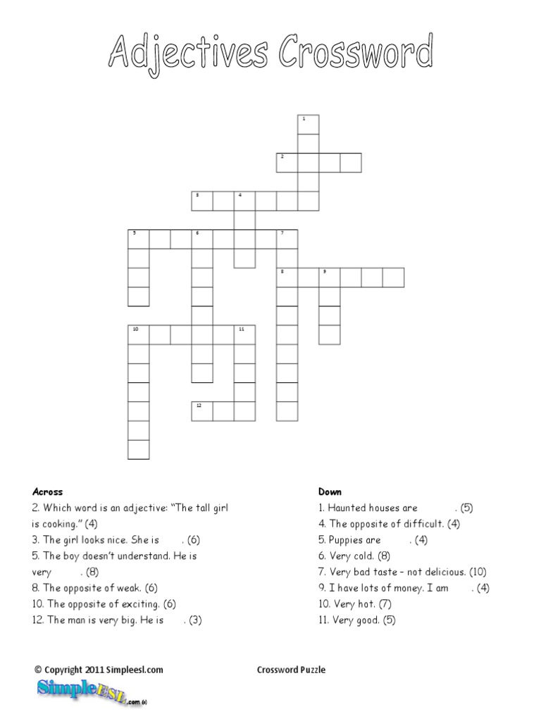Crossword Adjective Puzzles Word Puzzles