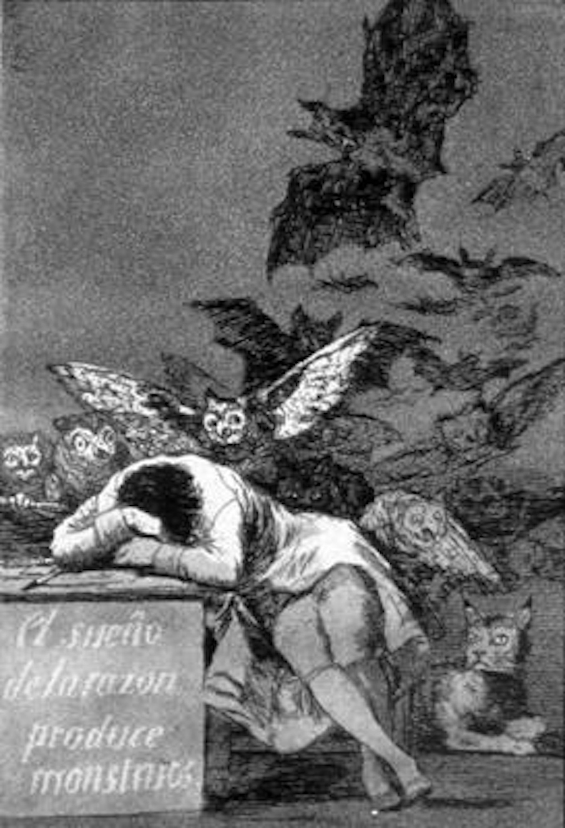 'The sleep of reason produces monsters', 1799. Artist Francisco Goya