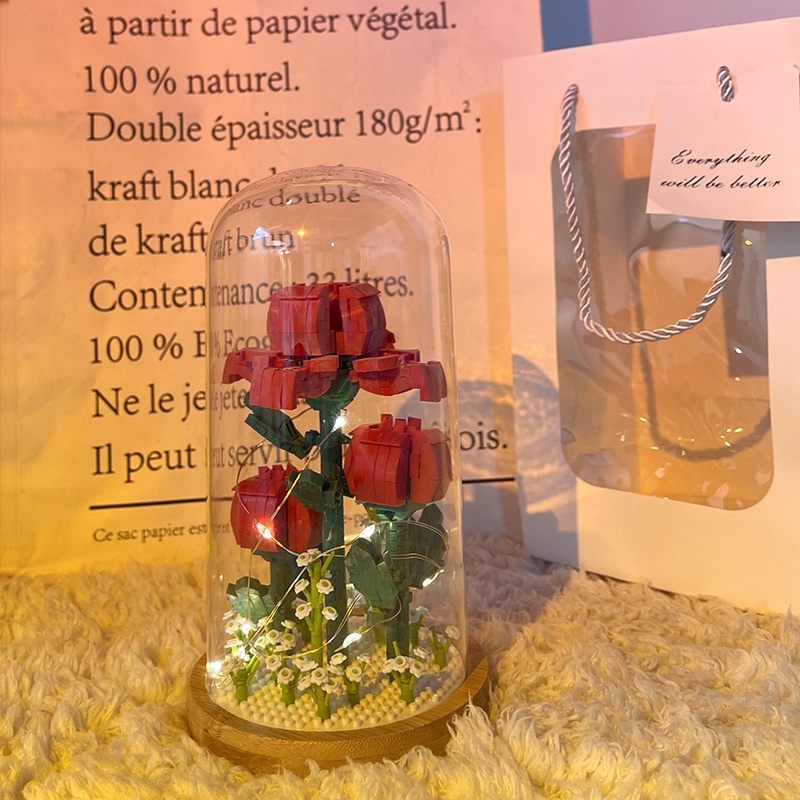 ของเล่นLego Assembled Puzzle Building Blocks Tiny Particle Toy Rose